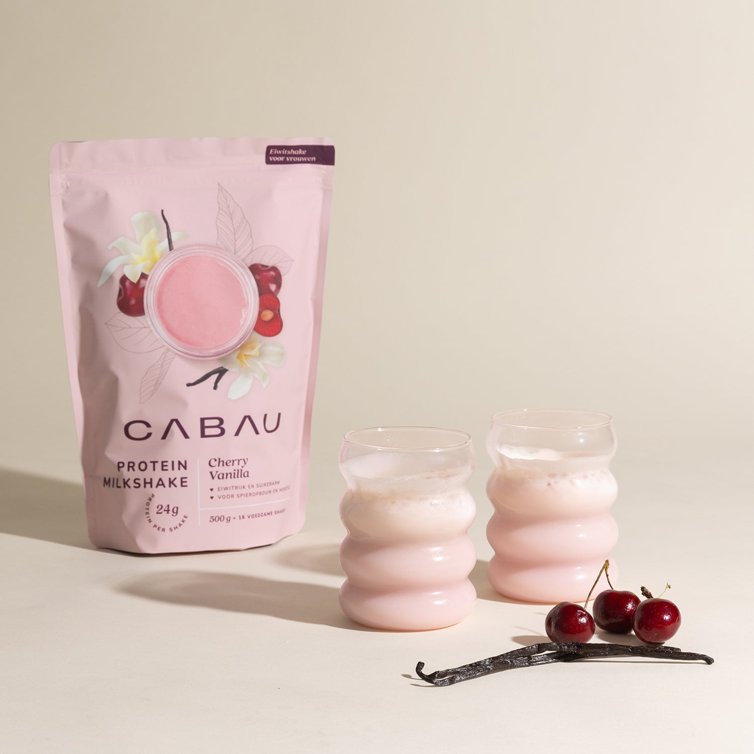 Whey protein concentrate (milk), fava bean protein isolate, natural flavouring, colouring: beetroot red, thickener: xanthan gum, emulsifier: lecithin, sweetener: sucralose.