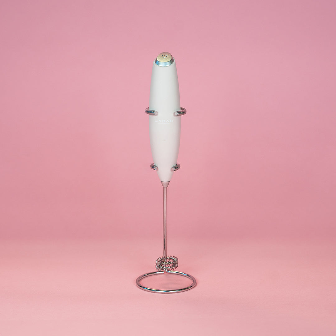 - For some extra foam, move the mixer upwards when the product is well mixed.