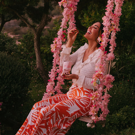 NL INGREDIENTEN: Witte chocoladecoating met zoetstof (zoetstof: maltitol E965, cacaoboter, volle melk poeder, emulgator: sojalecithine E322, natuurlijke vanille aroma); soja puffs (soja-eiwit, rijstzetmeel, rijstbloem, suiker, antiklontermiddel: calciumcarbonaat E170).