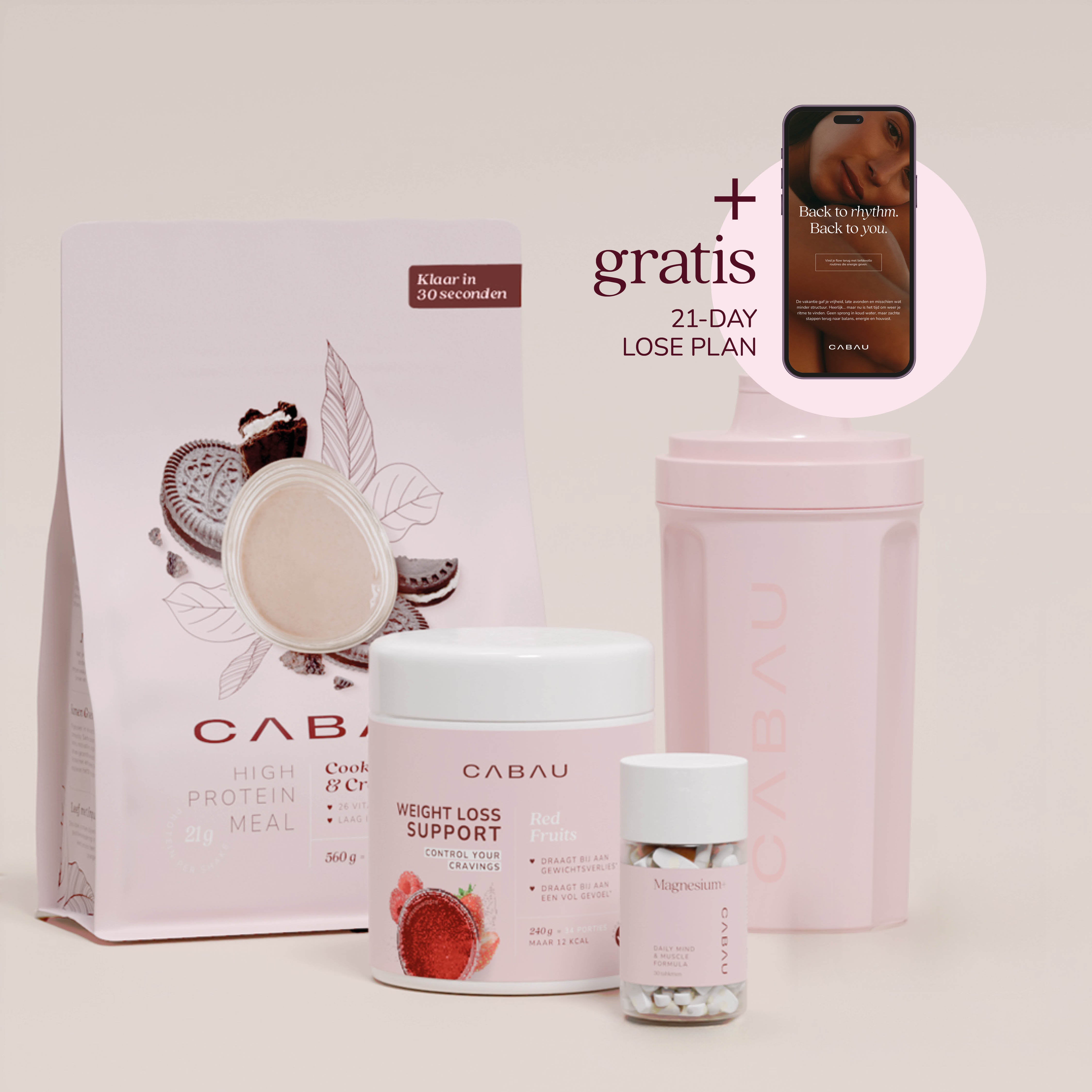 - Cabau Shaker – voor het gemakkelijk meenemen en mixen van je shakes