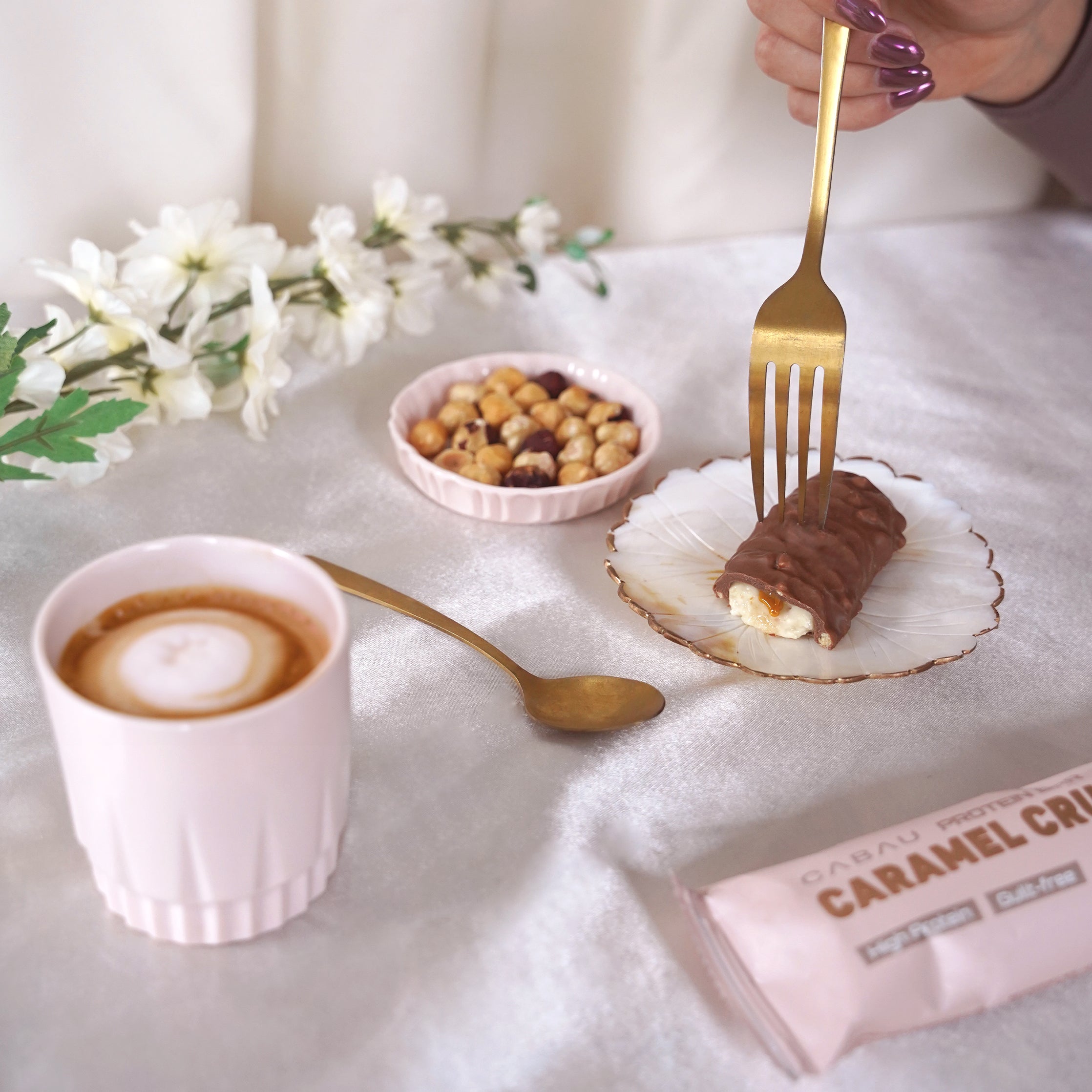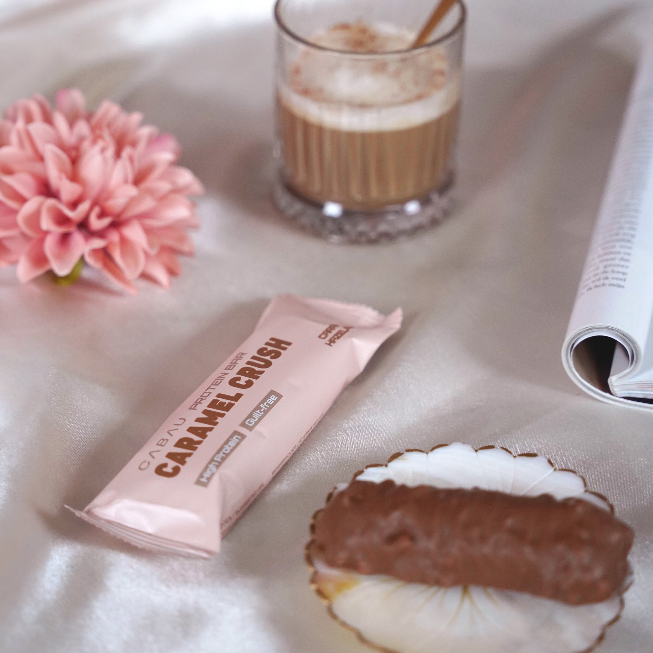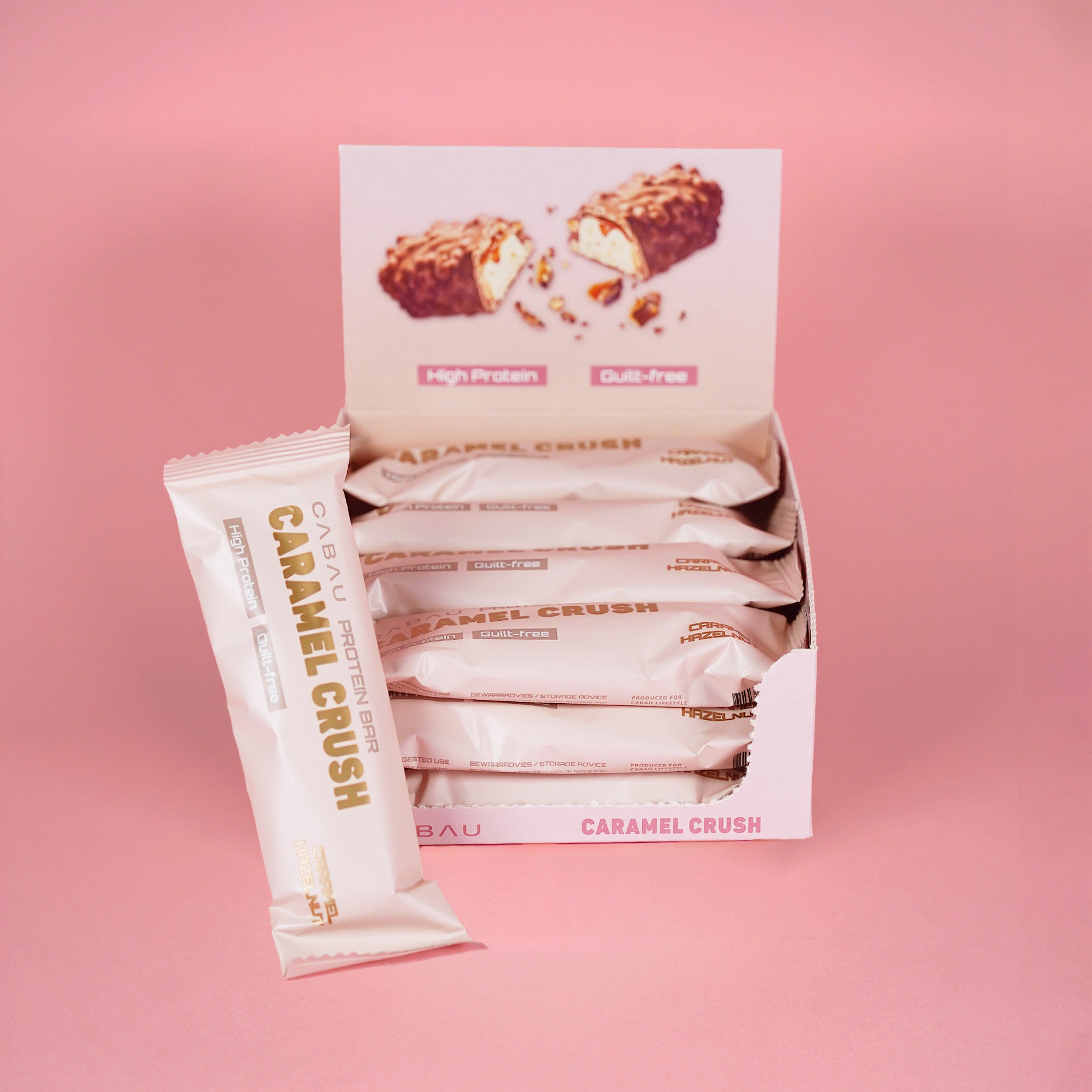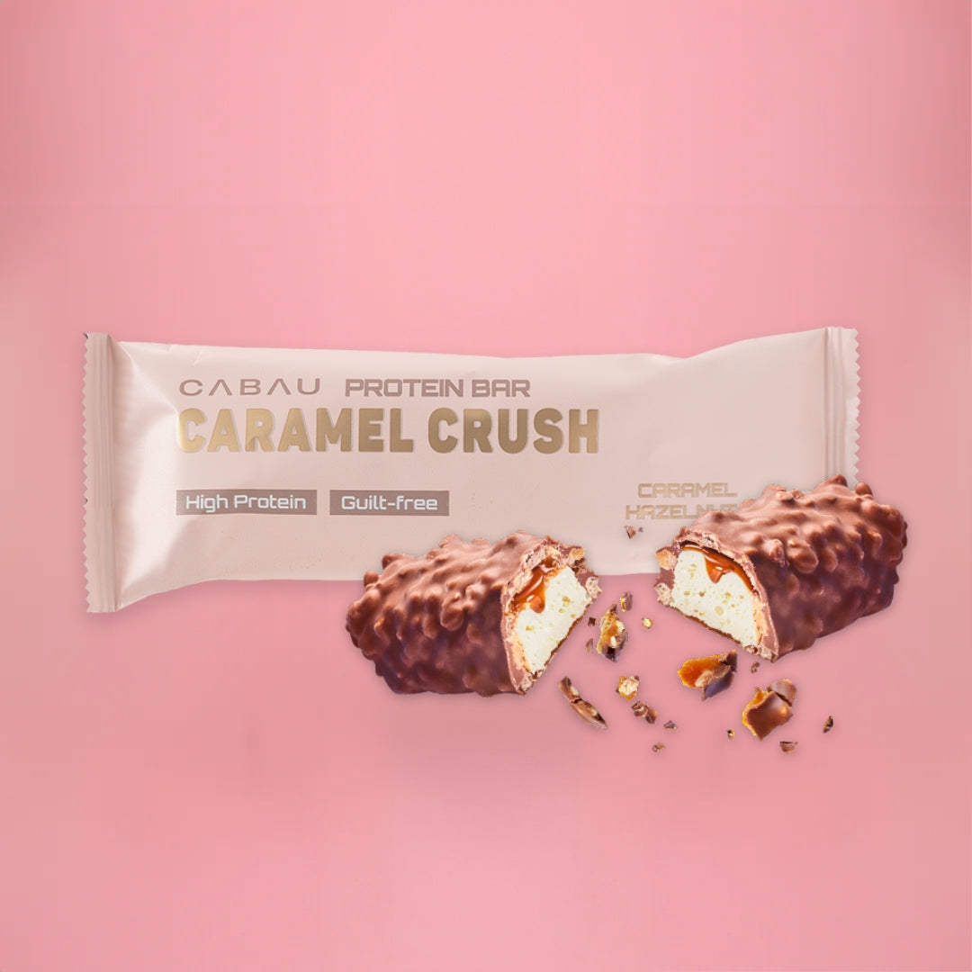 Dankzij de heerlijke smaak van karamel hazelnoot en de unieke textuur maakt het dat de Cabau Protein Bar de lekkerste eiwitreep is en dat proef je! De Cabau Protein Bar heeft een romige vulling met karamel en hazelnut, omhuld met knapperige chocolade voor de juiste crunch. Het is een must-have voor in je sporttas, of als perfecte tussendoortje.