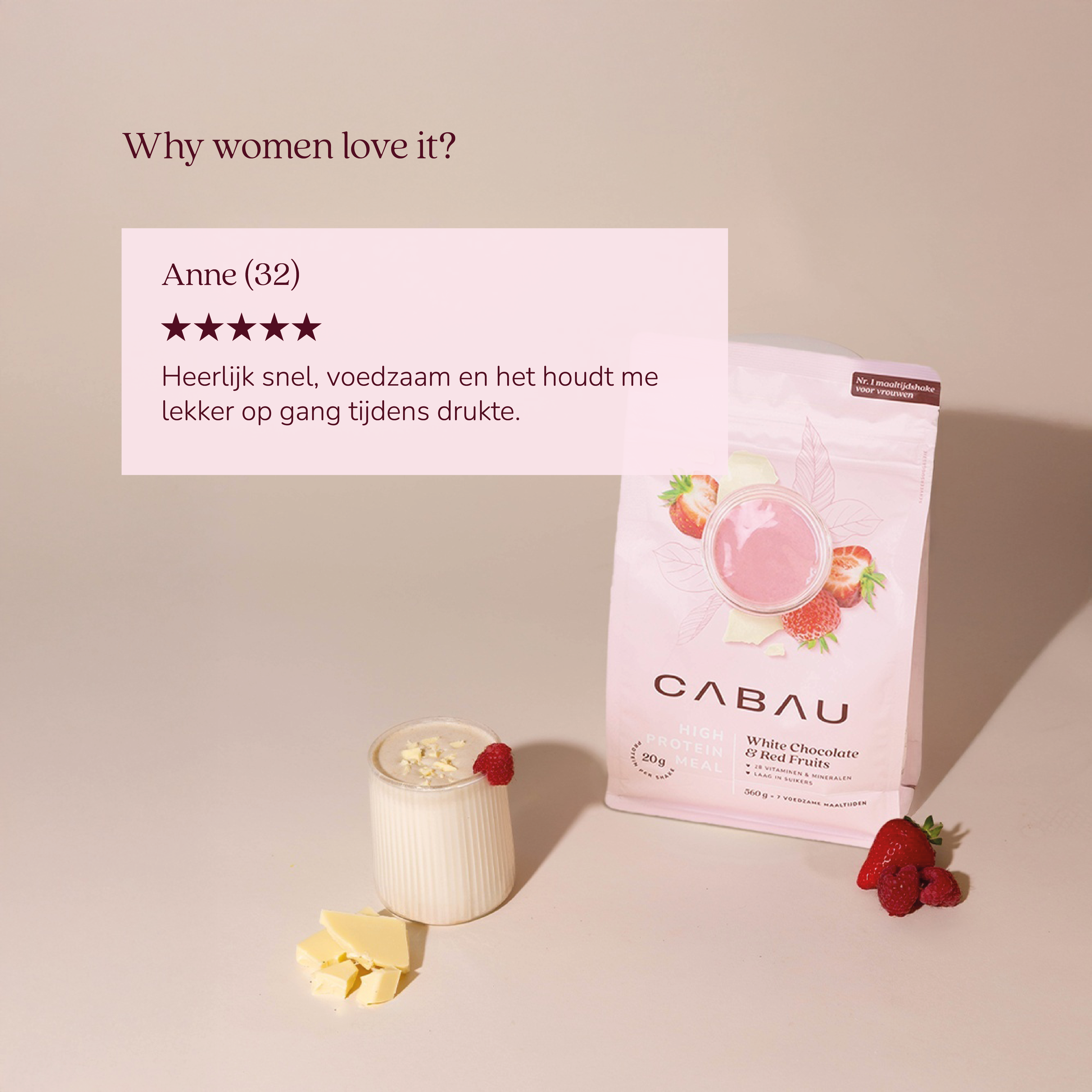 INGREDIENTEN: volkorenhavermeel (gluten), tuinboon eiwit isolaat, maltodextrine, inuline, natuurlijk aroma, calcium fosfaat tribasic, kaliumchloride, aardbeien poeder, ascorbinezuur (vit. C), kalium fosfaat dibasic, tri-kaliumcitraat, magnesium oxide, zoetstof: sucralose, kleurstof: rode biet, ijzer pyrofosfaat, zink sulfaat monohydraat, nicotinamide (vit. B3), DL-alfa-tocoferol, calcium-D-panthothenaat (vit. B5), mangaancitraat, pyridoxine (vit. B6), riboflavine (vit. B2), thiamine hydrochloride (vit. B1), kopergluconaat, vitamine A, foliumzuur (vit. B9), kaliumjodaat, natrium selenaat, chroom chloride, phyllochinon (vit. K1), biotine (vit. B8), natriummolybdaat, vitamin D2, cyanocobalamine (vit. B12).